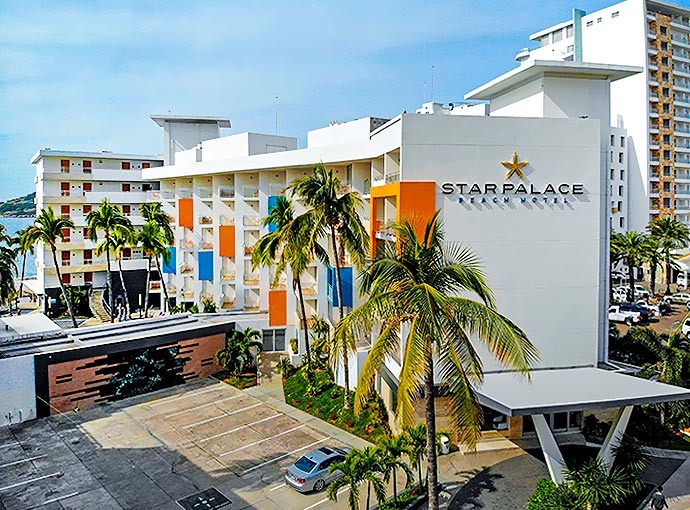 Star Palace Maztlan Hotel es una flamante propieda situada frente a una hermosa playa de Mazatlán, con facil acceso a la Zona Dorada y a la Marina Mazatlán. Destaca por sus habitaciones estilo contemporáneo, sus relajantes vistas y sus atractivas tarifas.